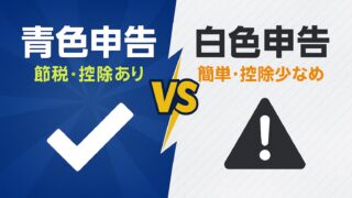 節税 青色申告と白色申告の違いを徹底解説|サラリーマン副業におすすめは? 副業サラリーマンが迷う「青色申告と白色申告の違い」を分かりやすく解説。少額なら白色、継続するなら青色がお得。控除・節税メリットや会社にバレない方法、切り替え手順や注意点まで具体例付きで紹介。さらに事業所得と雑所得の違いや20万円ルールの正しい理解もカバーします。 2025.09.19 節税